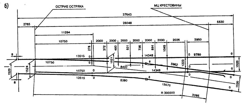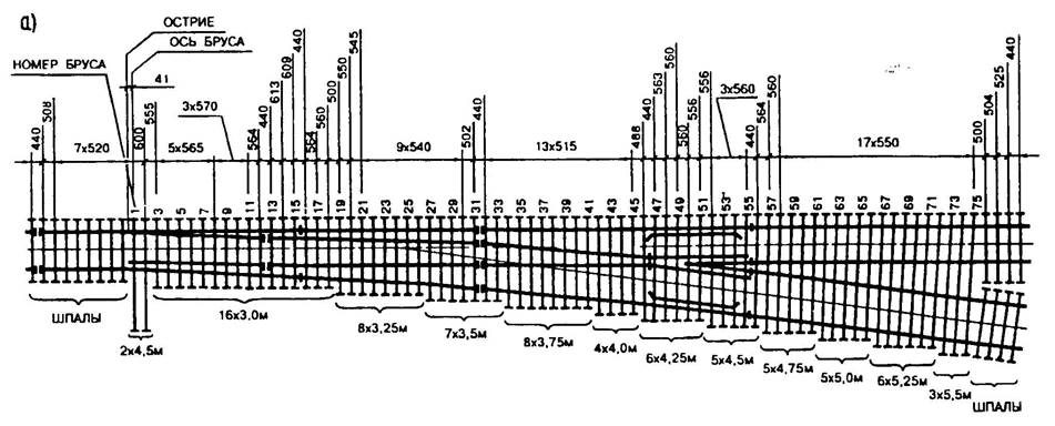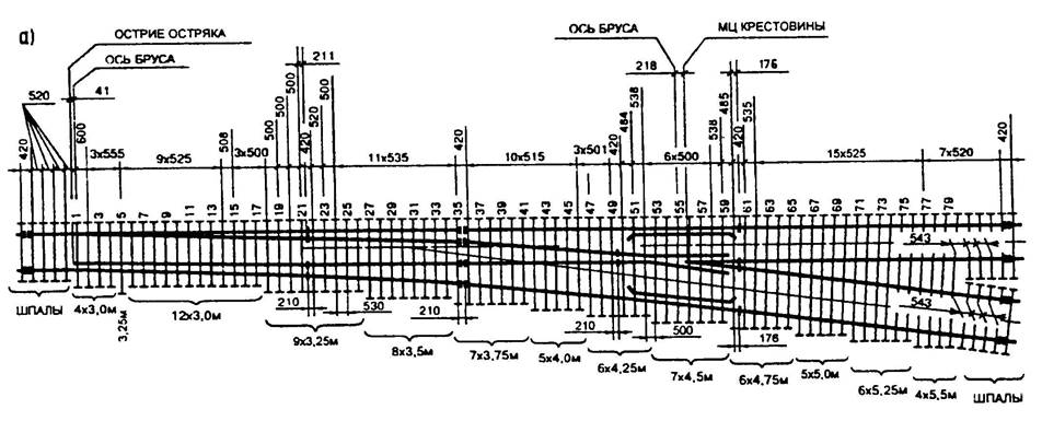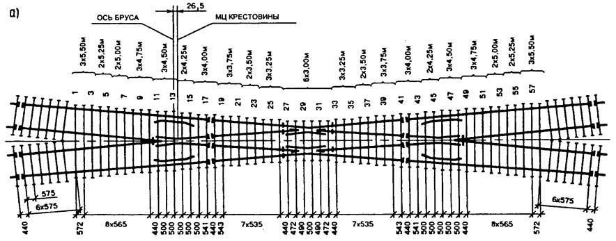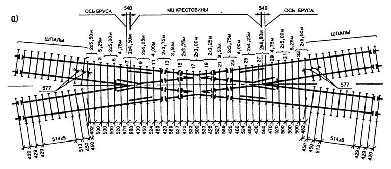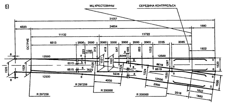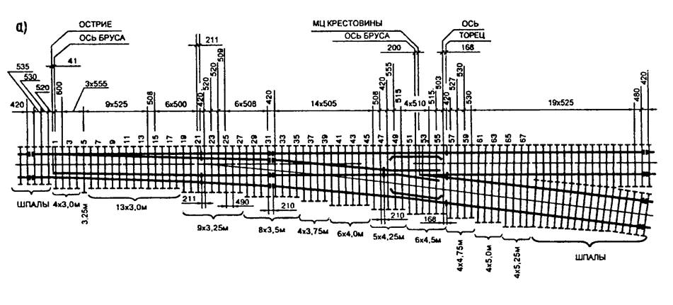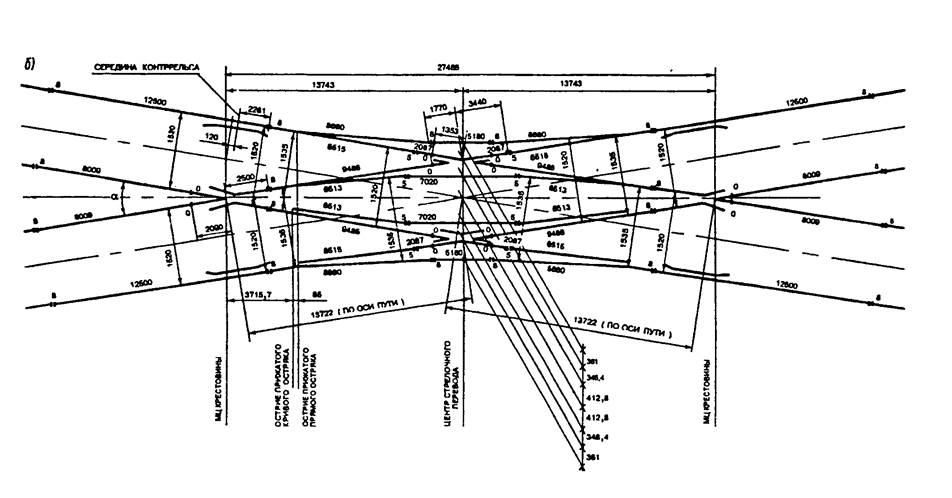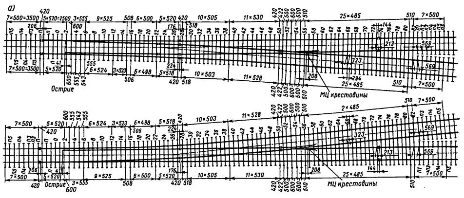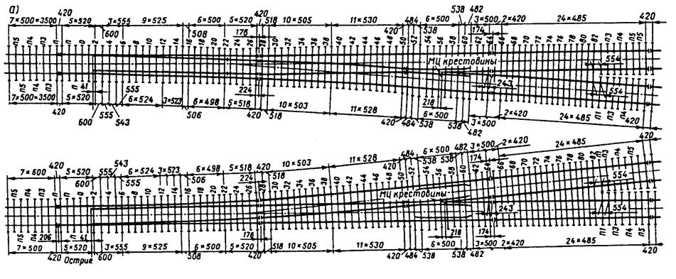 Постановка закрестовинных кривых в плане должна производиться по ординатам.