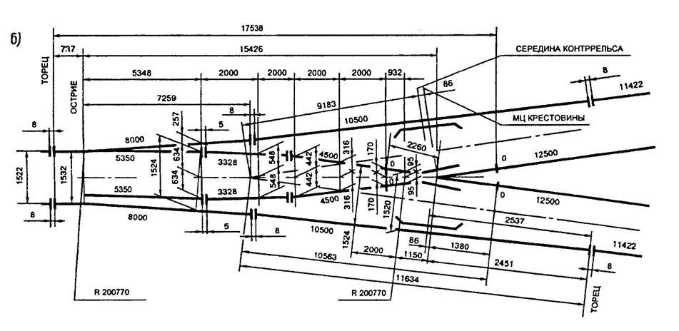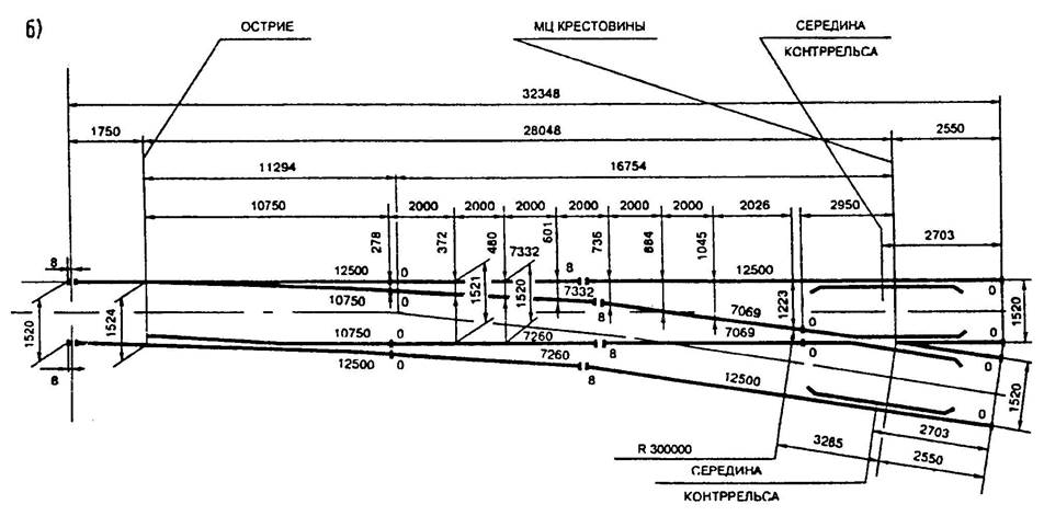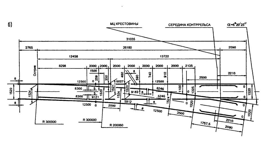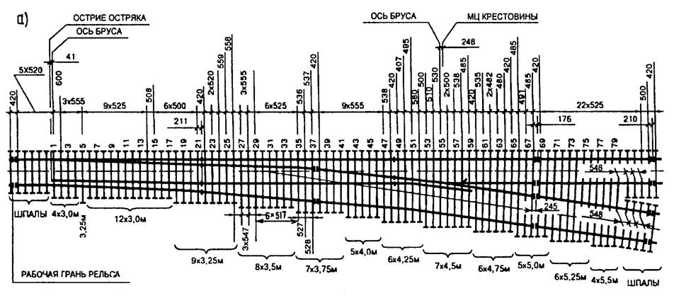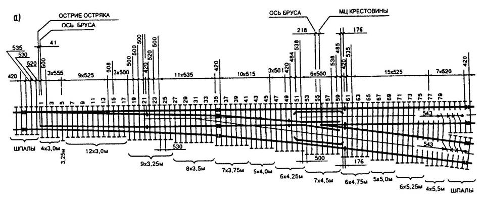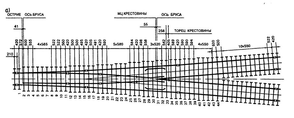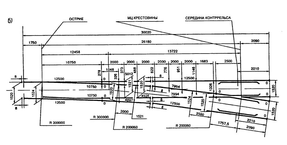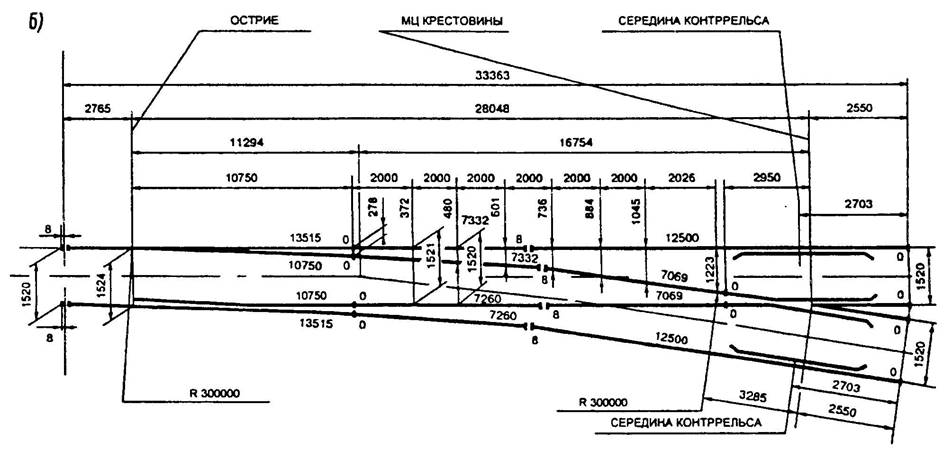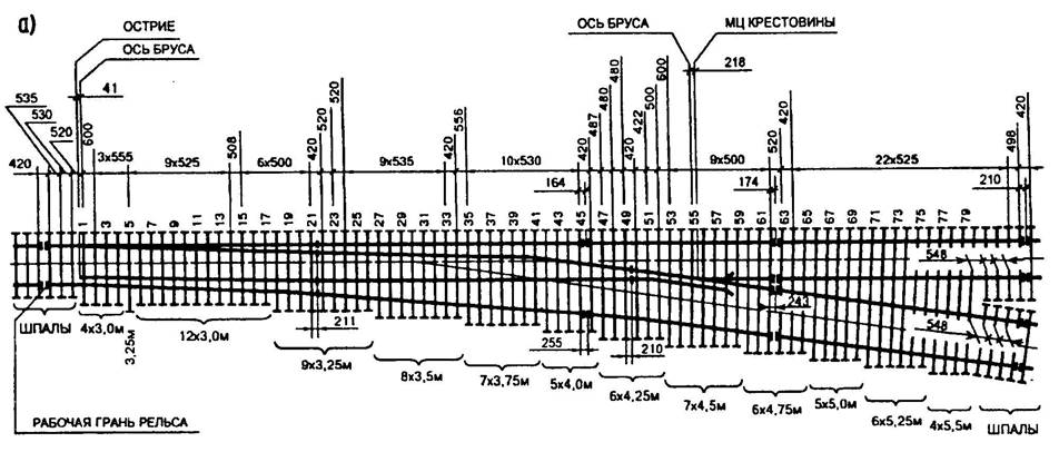 Постановка закрестовинных кривых в плане должна производиться по ординатам.