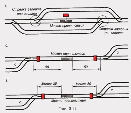 Ограждение мест препятствий для движения поездов и мест производства работ на станциях.